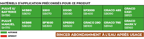 Application par badigeonnage ou pulvérisation à basse pression.